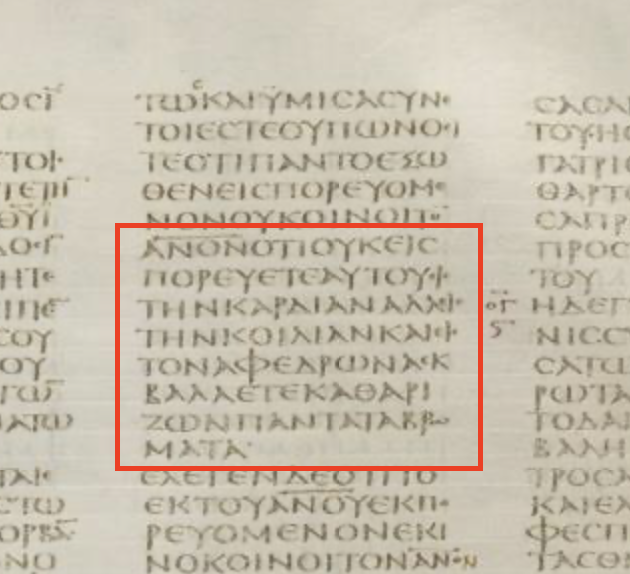 También observamos el mismo fenómeno en Mateo 23 cuando el Mesías reprende a los fariseos por pasar por alto los mandamientos más importantes; pues, procuran diezmar pero no actuar con justicia, misericordia y fidelidad. El Mesías comparó este tipo de hipocresía con fijarse en la astilla en el ojo del prójimo sin antes fijarse en el tronco que ellos mismos tenían en el suyo. A su vez, Pablo utiliza la metáfora de colar una mosca pero tragarse un camello.